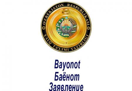 ЗАЯВЛЕНИЕ ИНФОРМАЦИОННОЙ СЛУЖБЫ УПРАВЛЕНИЯ НАРОДНОГО ОБРАЗОВАНИЯ ФЕРГАНСКОЙ ОБЛАСТИ
