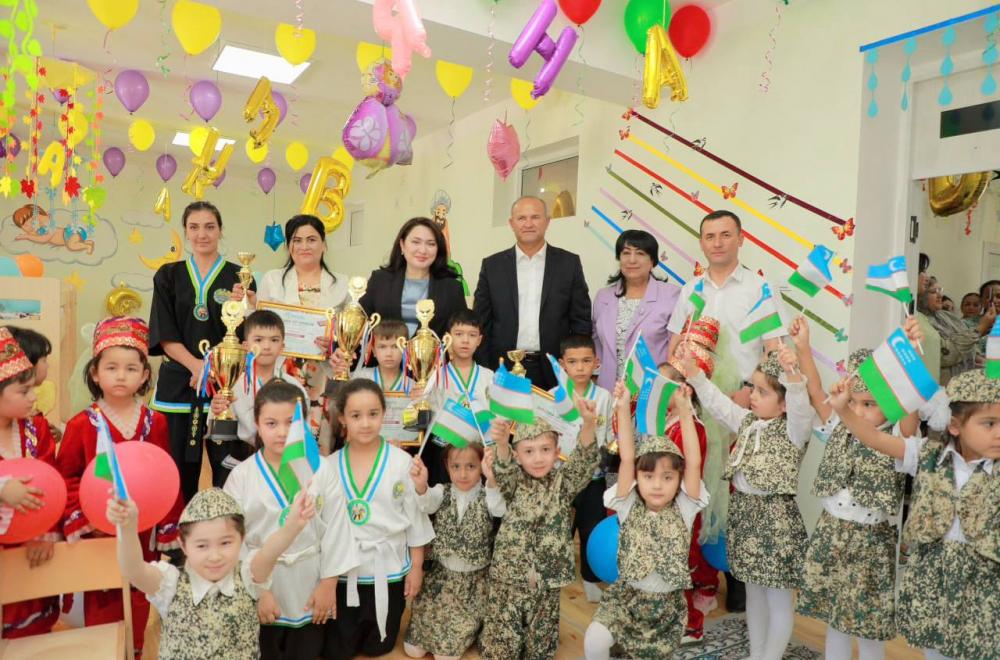 So‘ngra Hilola Umarova olis Peshku tumanidagi 45-davlat maktabgacha taʼlim tashkilotining ochilish tadbirida ishtirok etdi.